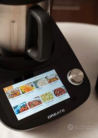 Robot da cucina multifunzione con 1800 W di potenza e capacità di 4 litri. È dotato di uno schermo tattile da 7 pollici per seguire passo dopo passo le tue ricette e di una connessione WiFi per controllarlo tramite l'app Create. Ha 26 programmi automatici ed è facile e intuitivo da usare, permettendoti di preparare piatti semplici o ricette complete. Con questo robot puoi cuocere al vapore, cucinare, grattugiare, affettare, bollire, mescolare, tritare, impastare, frullare o tritare il ghiaccio, tra le altre cose. Il suo cestello per la cottura a vapore a due livelli ti consente di preparare fino a 3 ricette contemporaneamente. Dispone di 12 velocità, funzione turbo e funzione reverse. Include 11 accessori diversi e ha una bilancia integrata.