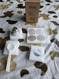 Coperchio in alluminio specifico per alimenti con linguetta. Le nostre capsule contenitore Nespresso ricaricabili sono fatte con acciaio inossidabile per alimenti, adatto al lavaggio in lavastoviglie, anti-ruggine, sicure e di lunga durata (fino a 10.000 volte!). Più la usi, più soldi risparmi.💝 Trovi nella confezione: 2* capsule contenitore 100* pellicole di alluminio, 1* pennello, 1* misurino
