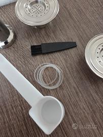Set di accessori per cialde da caffè riutilizzabili. - Realizzati in acciaio inossidabile. - Compatibili con macchine da caffè Bialetti. - Include accessori per la preparazione del caffè.
