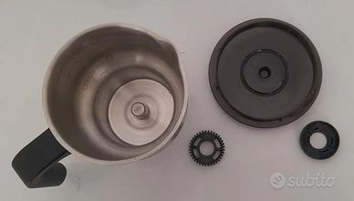 La cioccolatiera e cappuccinatore Cioccomilk di Lavazza comprende un bicchiere dalla capienza di 200 ml, perfetto per preparare una buona tazza di cioccolata fumante o un cappuccino, e un frullino versatilissimo: da usare nella versione dentellata per dar vita a cremosi cappuccini e inserito nella corona liscia per usarlo come montalatte, perfetto se desideri una cioccolata vellutata o del latte montato da aggiungere alle tue ricette più gustose.