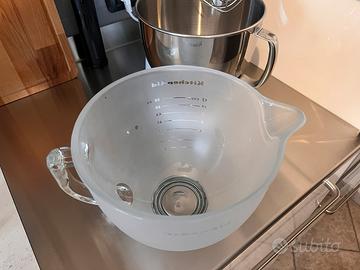 Vendo per inutilizzo ciotola in vetro graduata originale KitchenAid rif. 5K5GBF in condizioni perfette. Compatibile con modello artisan da 4,83L.