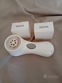 spazzola pulizia viso con caricatore e custodia+2 testine sensitive nuove.