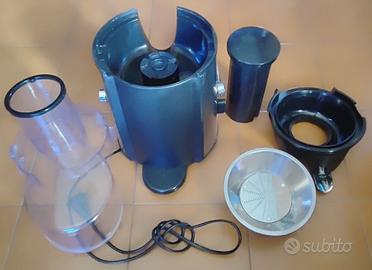 Centrifuga automatica professionale con alloggiamento in acciaio inox di alta qualità. Per preparare rapidamente succhi di frutta e verdura freschi, ricchi di sostanze nutritive per il benessere, il fitness e la salute. Con la centrifuga è possibile spremere in pochi secondi mele, carote e altri frutti senza doverli pelare.