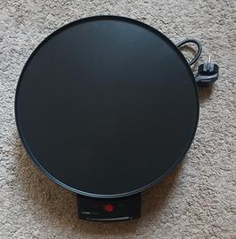 Piastra elettrica per crepe 29 cm, antiaderente, termostato a regolazione continua, pannello per controllo cottura, base termoisolante in plastica, nuova, mai usata