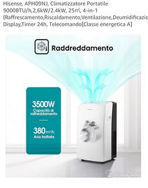 (Raffrescamento,Riscaldamento,Ventilazione,Deumidificazione), Telecomando[Classe energetica A] Marca Hisense utilizato pochissimo acquistato il 16 luglio 2024.