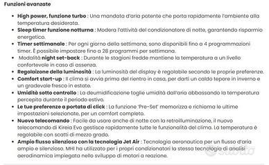Climatizzatore Condizionatore per Raffrescamento e Riscaldamento Mitsubishi nuova Serie KIREIA EVO 12000 BTU - Modello unità indoor SRK 25 ZS e unità outdoor SRC 35 Z6-W2 . Dotato di telecomando. Classe A+++. Wi-Fi Integrato. Colore bianco. Silenziosissimo e bassa emissione dB. Prezzo di mercato circa € 1.100 . La Maggior parte dei venditori abbinano a questo modello indoor SRK 25 Z6 un motore esterno classe SRC 25, invece questo è dotato di una unità esterna superiore Classe SRC 35. AMPIO FLUSSO SILENZIOSO CON TECNOLOGIA JET AIR Tecnologia aeronautica per il flusso d’aria ampio e silenzioso, MITSUBISHI ha utilizzato per i propri condizionatori la stessa tecnologia aerodinamica impiegata nello sviluppo di motori a reazione.