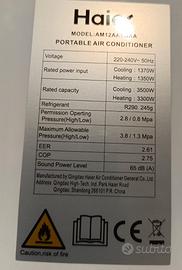 vendo CLIMATIZZATORE CONDIZIONATORE PORTATILE CALDO-FREDDO HAIER MODELLO AM12AA1GAA DA 12000 BTU