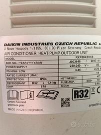 Vendo climatizzatore Daikin mono split inverter R32 a pompa di calore, completo di unità interna ed esterna. Il climatizzatore è pari al nuovo, installato ma mai utilizzato, in perfette condizioni estetiche e funzionali. Sistema ideale per raffrescamento estivo e riscaldamento invernale, adatto ad ambienti domestici o uffici di medie dimensioni. Smontaggio e trasporto a carico dell’acquirente