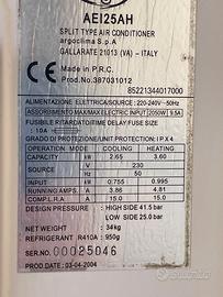 Climatizzatore inverter pompa pompa di calore (freddo e caldo) Argo con unità esterna e split interno completo di manuale e telecomando. potenza 12.000 BTU. Perfettamente funzionante. Già smontato.