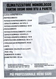 Vendesi climatizzatoreUNICO monoblocco FANTINI COSMI 8000 BTU a parete, nuovo senza confezione, come da scheda allegata.