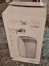 vendo CLIMATIZZATORE CONDIZIONATORE OLIMPIA SPLENDID PORTATILE mod. DOLCECLIMA CUBE 12000 BTU mai usato PAGATO 600 EUR caratteristiche tecniche: Capacità di refrigerazione: 12.000 BTU/h - Classe energetica A - Potenza sonora DB 63 Sistema di smaltimento automatico della condensa - Telecomando multifunzione - Display LCD - Timer 12h - Maniglie laterali - Ruote. Principali funzioni: Funzione di sola ventilazione - Funzione deumidificazione - Funzione Auto per regolare e mantenere la temperatura automaticamente; Funzione Sleep per ottimizzare la temperatura in relazione a consumi e rumorosità - Funzione Turbo per ottenere Super fresco POSSO SPEDIRE