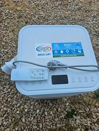 8000 BTU, con funzione deumidificatore e ventilatore, programmabile, compreso di telecomando e tubo flessibile di scarico aria calda adattabile a finestra o portafinestra