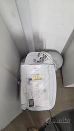 vendo climatizzatore inverter sia caldo che freddo portatile come nuovo usato un paio di ore completo di garanzia modello Odin Plus Argo : Il climatizzatore portatile ARGO ODIN PLUS è una soluzione completa per il raffrescamento, la deumidificazione e il riscaldamento degli ambienti domestici o lavorativi. Grazie alla pompa di calore integrata, questo dispositivo è perfetto per tutte le stagioni, garantendo sempre il massimo comfort. Il suo design avvolgente con finitura total white si distingue per eleganza e modernità, integrandosi armoniosamente in qualsiasi contesto abitativo. La connettività WiFi integrata consente un controllo intuitivo da remoto tramite smartphone o tablet, mentre il pannello comandi soft-touch e il telecomando multifunzione assicurano un`interazione semplice e pratica. Le maniglie laterali e le ruote pluridirezionali ne facilitano lo spostamento, rendendolo un dispositivo versatile e adatto a molteplici esigenze. Caratteristiche Principali: Design raffinato: Finitura total white di alta qualità, con linee avvolgenti ed eleganti. Flap superiore motorizzato: Ampia oscillazione automatica per una distribuzione uniforme dell`aria, gestibile anche tramite telecomando. Pannello soft-touch e display LED: Controllo immediato e intuitivo delle impostazioni e delle funzionalità attive. Connettività WiFi: Controllo remoto tramite app dedicata per una gestione semplice e personalizzata, ovunque ti trovi. Massima portabilità: Dotato di ruote pluridirezionali e maniglie laterali integrate per un facile spostamento. 4 modalità operative: Raffrescamento, riscaldamento, ventilazione e deumidificazione per un utilizzo tutto l`anno. Ventilatore a 3 velocità: Per regolare la portata d`aria in base alle esigenze. Timer digitale 24h: Programmazione giornaliera per ottimizzare comfort e risparmio energetico. Funzione "Sleep": Regola il funzionamento per un comfort ottimale durante il sonno. Funzione "Memory": Ripristina le ultime impostazioni dopo un black