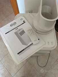 Condizionatore portatile - Potenza: 8000 BTU - Design minimal, finitura raffinata, di colore bianco puro - Pannello comandi digitale Tasti soft-touch - Display a LED - Telecomando “user friendly” - Timer ON/OFF digitale 24h - Funzioni: raffrescamento, ventilazione e deumidificazione - Funzione “Sleep”: comfort durante il sonno - Funzione “Memory”: auto-restart dopo un black-out, con mantenimento ultime impostazioni - Funzione “Blocco-bambino” - Ventilatore a 2 velocità - Filtro dell’aria lavabile, facilmente rimovibile - Vaporizzazione automatica della condensa in funzione climatizzazione - Possibilità di scarico continuo condensa in modalità deumidificazione