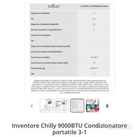 Vendo climatizzatore portatile marca Inventore Chilly 9000BTU