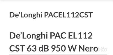 De'Longhi PAC EL112 CST, A+, 0,9 kWh, Da A+++ a D, 950 W, 220 - 240 V, 50 Hz