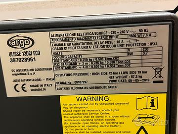 Per installazione impianto fisso vendo climatizzatore Argo Ulisse Eco da 3,7 kw, adatto anche per utenza domestica da 3 Kw. Come nuovo