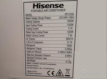 - 1 Climatizzatore Portatile Hisense APC12QC.