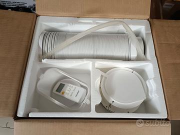 Oltre ai pezzi inclusi nella confezione ci sono anche altri pezzi per fissare il tubo direttamente alla presa d'aria della cucina (quella in basso). In questo modo il condizionatore può buttare l'aria fuori attraverso la presa d'aria.