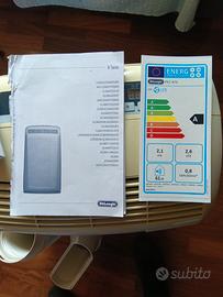 Climatizzatore portatile Pinguino De'Longhi 8200 BTU/h con funzione ventilatore e deumidificatore. Tre diverse velocità di funzionamento, tutto regolabile con il telecomando.