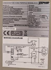 Climatizzatore / Condizionatore Zephir ZDY9000 Vendo climatizzatore portatile Zephir ZDY9000 con funzione di raffreddamento, riscaldamento e deumidificatore. Il climatizzatore è completo di telecomando, tubo estensibile e griglia digitale per installazione a scomparsa. Per ulteriori dettagli e specifiche tecniche complete fare riferimento alle foto dell’annuncio.