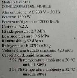 Climatizzatore come da descrizione.