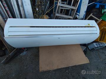 Vendo climatizzatore professionale TCL da 24.000 BTU (Modello S24F1S0T) in condizioni pari al nuovo. L'apparecchio era stato acquistato per un locale commerciale (macelleria), ma a causa di un cambio di sede è stato utilizzato pochissimo, smontato professionalmente e conservato con cura in deposito. È la soluzione ideale per chi deve climatizzare grandi ambienti come ampi saloni, uffici, open space o attività commerciali (fino a 80-90 mq). Punti di forza: Gas refrigerante R32: Modello recente, massima efficienza energetica e pieno rispetto delle normative ambientali. Potenza elevata: 7.0 kW in raffreddamento e 7.15 kW in riscaldamento (pompa di calore perfetta anche per l'inverno). Condizioni: Macchina pulita, filtri perfetti e meccanica impeccabile data la scarsa usura. Affidabilità: Unità esterna robusta (40kg) progettata per garantire grandi performance costanti. Specifiche tecniche (da etichetta): Modello: S24F1S0T Capacità Raffreddamento: 24.000 BTU / 7000W Capacità Riscaldamento: 7150W Tecnologia Inverter per risparmio energetico Portata d'aria: 1200 m³/h Incluso nel prezzo: Unità interna (Split) Unità esterna (Motore) Telecomando originale Prezzo: € 450 Note: Ritiro a mano a Scafati. L'unità esterna è pesante (40kg), consiglio di venire muniti di mezzo adeguato. Disponibile per qualsiasi visione. No perditempo, il prezzo rispecchia le condizioni reali dell'oggetto (praticamente nuovo).
