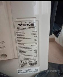 Vendo climatizzatore monosplit Toyotomi serie HIRO (modello HTN/HTG-717R32), perfettamente funzionante e tenuto con estrema cura. Macchina potente, ideale per ambienti grandi (fino a 50-60 mq). Il condizionatore utilizza il gas R32, l'ultimo standard del settore che garantisce massima efficienza energetica e minor impatto ambientale. Grazie alla tecnologia DC Inverter, i consumi sono ridottissimi sia in raffrescamento che in riscaldamento. Potenza: 18.000 BTU (15.700 BTU freddo / 17.600 BTU caldo). Tecnologia: Inverter (mantenimento temperatura costante e basso consumo). Gas Refrigerante: R32 (ecologico e performante). Condizioni: Usato pochissimo, pulito e pronto all'installazione. Accessori inclusi: Telecomando originale retroilluminato e manuale d'uso/installazione. Unità Interna: HTN-717R32 (13,5 kg) Unità Esterna: HTG-717R32 (34 kg) Alimentazione: 220-240V / 50Hz. Prezzo poco trattabile. Tenuto bene. Usato una sola estate.