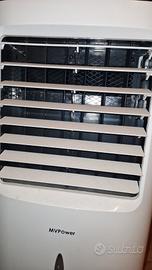climatizzatore senza tubo con ruote rotante con caricamento ad acqua e chiaccio, con telecomando funzionante a rete elettrica, rinfresca una stanza 4x4 in breve tempo usato un solo anno. Antonio 3467965000