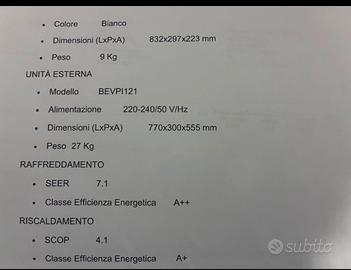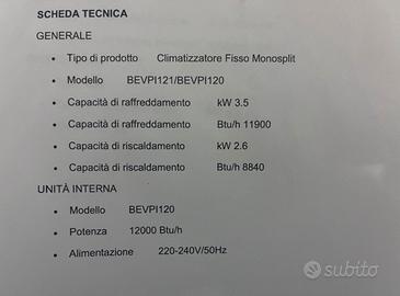 Vendo climatizzatore a pompa di calore 12000 btu Acquistato nel 2021 ma utilizzato solo d’estate Il clima è in ottime condizioni pari al nuovo con libretto e telecomando originale