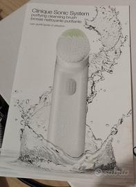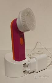 apparecchio sonico per la detersione del viso con accessorio in acciaio per massaggio del viso e spazzolina ricambio nuova
