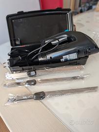 Vendo coltello elettrico Cecotec modello Cut-Eat 1800 Black (150W), acquistato e utilizzato una sola volta. Lo vendo per inutilizzo, è in condizioni immacolate, pari al nuovo. Questo coltello è potentissimo ed estremamente versatile grazie alle 3 lame in acciaio inox incluse (ancora sigillate nella loro plastica originale): Lama multifunzione per carne, pane, ecc. Lama speciale per surgelati. Una terza lama di ricambio o per usi specifici (vedi foto). Il set è completo e comprende: Corpo motore principale da 150W (color nero con pulsante turchese). 3 lame diverse intercambiabili e lavabili in lavastoviglie. Valigetta rigida originale nera marchiata Cecotec per riporre tutto in ordine. Scatola originale. Manuale di istruzioni. Caratteristiche salienti: Potenza 150W. Lame in acciaio inox di alta qualità. Impugnatura ergonomica e sicura. Basso livello di rumore e vibrazioni. Ideale per tagliare arrosti, carne cruda, pane, dolci e anche cibi congelati senza fatica e con precisione. Se consegna a mano Corsico (MI)