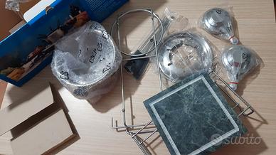 Combi Gourmet set 14 pezzi "eva collection" x Cucinare alla pietra/bourguignonne e fonduta NUOVO comprende: -Pietra naturale cm 19 x 19 -Pentolino c/coperchio x fonduta Inox -Rechaud comato -Sostegno porta in tavola cromato -Vassoio base inox cm 33 x 17 -2 bruciatori cromati -6 forchette cromate