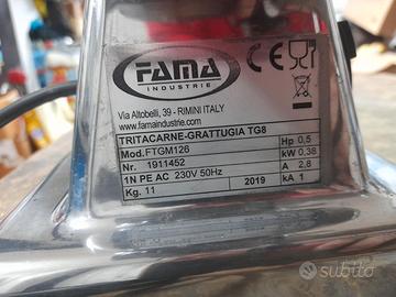 Vendo come da foto combinata grattugia/tritacarne marca FAMA Mod. FTGM126, bocca tritacarne misura 8, gruppo macinazione e rullo grattugia inox. Pari nuovo. usata pochissimo, appena pulita completamente.