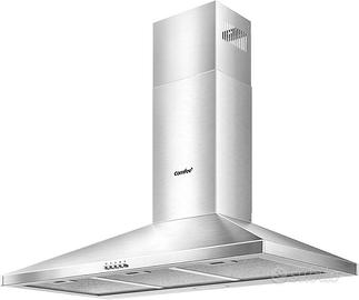 COMFEE' Cappa Aspirante 90 cm PYRA17SS-90 Acciaio Inossidabile Cappa Cucina con LED, Sistema di Ricircolo e Canalizzazione e Filtri a Carbone [Classe di efficienza energetica B]