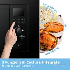 【Cottura Combinata】Il Comfee forno a microonde da Incasso 20L è dotato di una funzione microonde da 800 W con 5 livelli di potenza, una grill da 1000 W con 3 livelli di potenza e una modalità di cottura combinata. Progetta la tua esperienza culinaria in modo personalizzato, ideale per preparare una vasta gamma di piatti per tutta la famiglia.