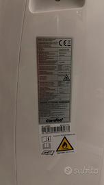 Perfettamente funzionante, utilizzato solo qualche notte della scorsa estate. Vendo causa passaggio a impianto. Di seguito le specifiche: Marchio COMFEE' Capacità 63 Litri Potenza di raffreddamento 9000 Unità termiche britanniche Caratteristica speciale Cooling function, Deumidificatore , Filtro antipolvere Dimensioni del prodotto 45,8P x 37,3l x 77,5H cm In caso di interruzione nell'erogazione di energia elettrica durante il funzionamento, al ripristino dell'alimentazione il prodotto si riavvia con le impostazioni operative in uso al momento dell'interruzione. Le alette di direzione del flusso d'aria sono motorizzate e controllabili in modalità oscillazione continua e arresto in posizione predeterminata con un pulsante. Il comando a infrarossi a corredo permette di controllare tutte le funzioni del prodotto senza la necessità di accedere al pannello di controllo a bordo dell'unità. L'unità è dotata di ruote piroettanti che facilitano il trasporto e lo spostamento del prodotto negli ambienti. La funzione sleep permette di correggere progressivamente la temperatura impostata per il raffreddamento per prevenire gli effetti dell'eccessivo raffreddamento nelle ore notturne. Pressione sonora (Max): 54 dB(A); potenza sonora (Max): 65 dB(A)