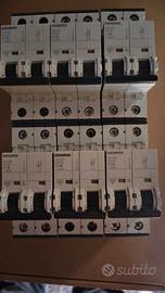 Materiale Siemens. Nello specifico: 6 magnetotermici 16A 5SY62 due moduli 1 magnetotermico 25A un modulo, un polo + neutro - 5sy6025 7 1 interruttore di isolamento 5te8112 20A 1 commutatore 5TE8142 20A 1 contattore 2NA+2NC 5TT5 8322 con bobina 24v