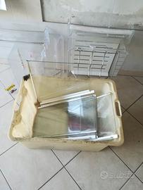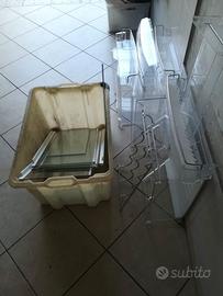 COMPONENTI FRIGO CONGELATORE REX ELECTROLUX. Vendo tutti i componenti contenuti in un frigorifero congelatore a colonna, il frizer composto da tre cassetti di cui 2 grandi e 1 piccolo mentre il frigo è composto da 4 ripiani tutti in vetro con portavivande, cassettone porta frutta, cassettini vari per spezie ecc. In ottimo stato. I componenti vanno su tutta la gamma di frigo frizer delle REX ELECTROLUX. Il modello su cui erano montati lo vedete in foto. Vendo il tutto a 29 euro.