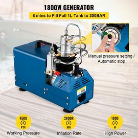 Compressore Elettrico ad Alta Pressione 1800W Pompa ad Aria Compressa a Modo di Arresto Automatico 220V con Tubo e Tappo, Adatta per Bombole Subacquee, Carabine PCP, Bombole di Paintball, ecc. · Pressione Regolabile: il nostro compressore d'aria PCP è realizzato con cavo di rame e un motore da 1800 W. Può produrre alta pressione in modo rapido ed efficiente con una pressione massima di 4500PSI. È possibile preimpostare la pressione in base alle proprie esigenze e la macchina si fermerà automaticamente quando la pressione raggiunge.