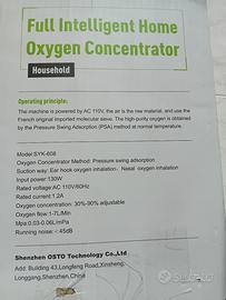 concentratore di ossigeno per casa da 1 a 7 litri al minuto, come nuovo, usato pochissimo, in scatola originale e con accessori, telecomando incluso