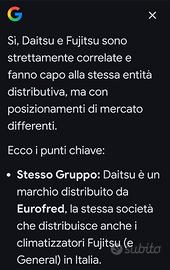 Vendo condizionatore DAITSU gruppo (Fujitsu leader nel settore) Usato pochissimo per calcolo metratura sbagliato. No Daikin no Mitsubishi no Hisense.