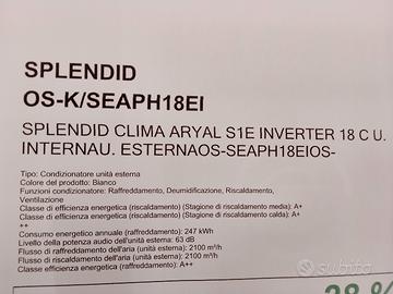 Condizionatore Olimpia Splendid inverter 18.000 BTU unità interna ed esterna, caldo/freddo, classe A++, Wifi . Vendo per errato acquisto. prodotto NUOVO con garanzia 2 anni.