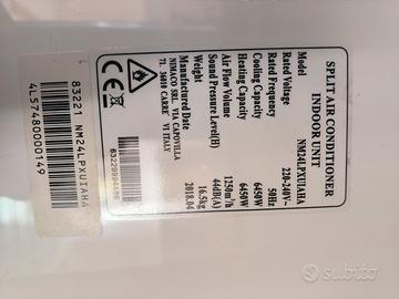 Vendo condizionatore split NM24LPXUIAHA completo di unità esterna, gas carico, staffe e accessori.