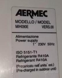 Condizionatore Aermec con 2 split e telecomando; A pompa di calore; Usato poco; Da ricaricare con gas R410; Visibile in zona Brugnera.