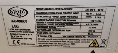 CONDIZIONATORE ARGO LARI CLASSE A 8000/BTU CON FUNZIONE DEUMIDIFICATORE, MOLTO ADATTO ANCHE AI CAMPER