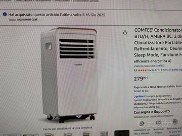 Vendesi come da titolo e da foto condizionatore acquistato meno di un anno fa e utilizzato 5 giorni in una roulotte a luglio. Perfettamente funzionante ed otiimo prodotto per piccoli ambienti tipo camerette o studio fa davvero fresco nelle calde estati. Lo vendo per passaggio a camper dove è gia presente l aria condizionata. Completo di scatola originale istruzioni e telecomando. Come nuovo .
