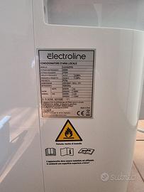 Condizionatore d'aria locale Electroline per raffreddamento, deumidificazione, ventilazione e riscaldamento soggetto a vendita a seguito di cambio di residenza. Acquistato a giugno 2025 e in garanzia fino a giugno 27. Completo di tutte le componenti, del manuale di uso e manutenzione e di scontrino digitale relativo all'acquisto.