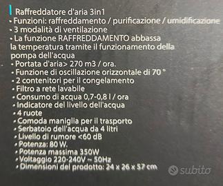 Funzioni: Raffreddamento, pulizia e umidificazione