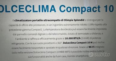 climatizzatore portatile ultracompatto di Olimpia Splendid modello DOLCECLIMA COMPACT 10 Ingombro estremamente ridotto (-19% rispetto alla precedente gamma Compact).